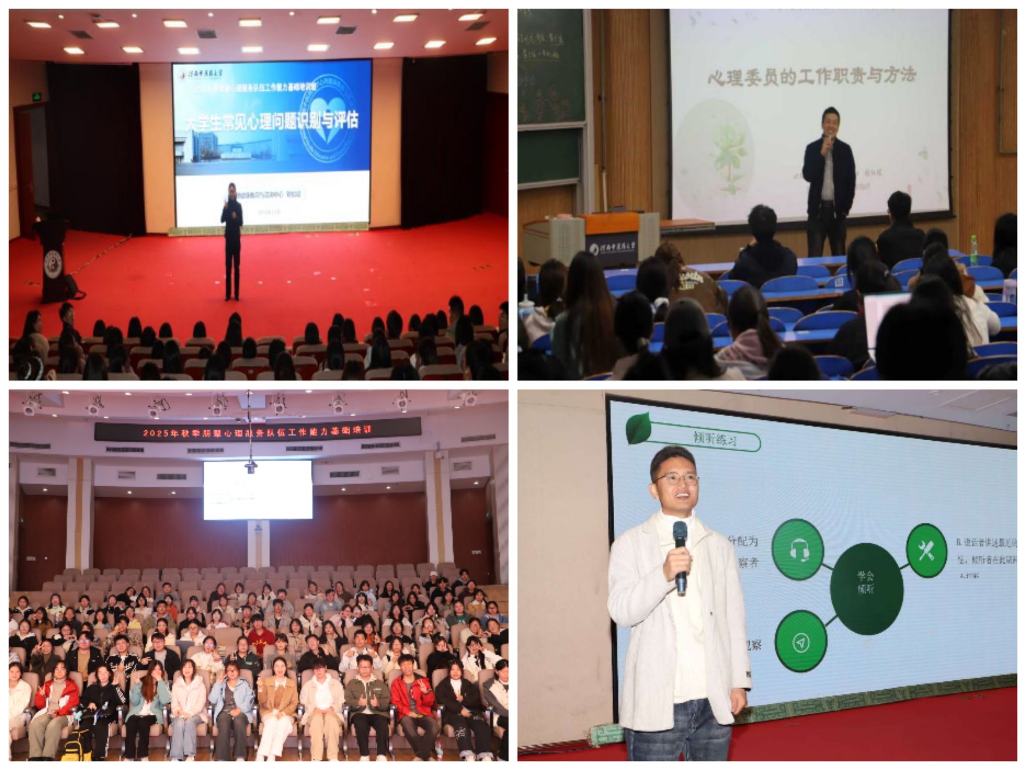 朋辈心理服务队伍是我校心理健康教育四级网络的重要组成部分,在心理健康知识普及、心理危机预警干预等方面发挥着关键作用。本次培训有效强化了队伍的责任意识与专业能力,为构建“全员、全程、全方位”的心理育人格局奠定了坚实基础。